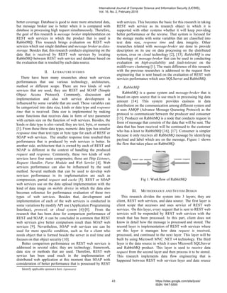 This document summarizes a research paper that implemented RabbitMQ as a message broker in distributed applications using REST web services. The researchers conducted two stages: 1) Using a single database (SQLServer) as the data source for REST web services, which resulted in high failure rates for large data sizes and many parallel requests. 2) Adding RabbitMQ as a layer between the REST services and database, which significantly improved data integrity and reduced failure rates, especially for large data sizes and many parallel requests. The researchers concluded that RabbitMQ is better suited than a single database for handling big data and high volumes of simultaneous requests in distributed applications using REST web services.
