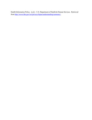 The document discusses the importance of maintaining patient confidentiality and adhering to HIPAA regulations to prevent unauthorized access to personal health information. It outlines proposed training and security measures for employees, including mandatory review of HIPAA standards, signing contracts, and using identification badges for access to medical records. Additionally, it emphasizes regular seminars to reinforce compliance and understanding of confidentiality policies.