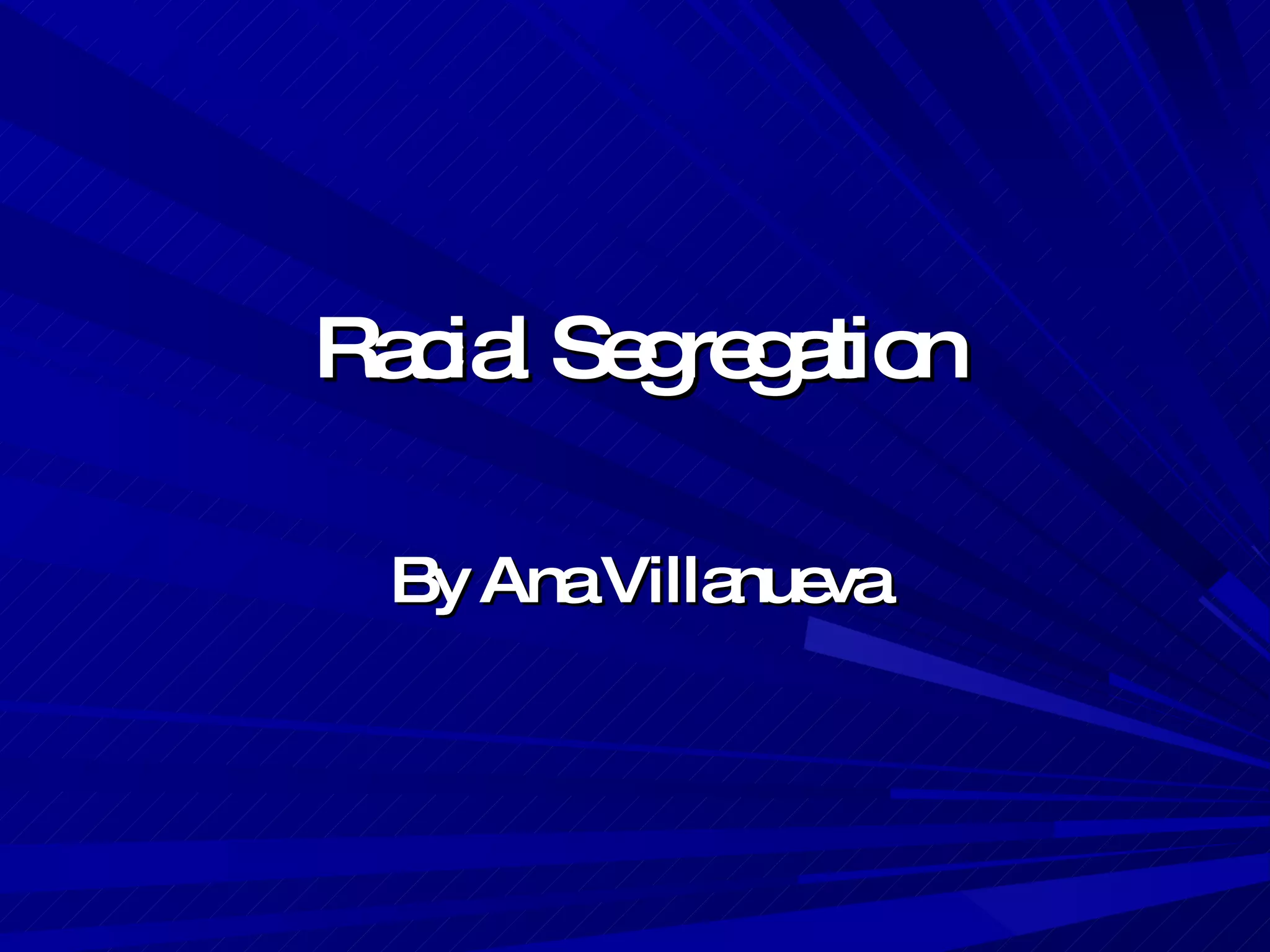 Racial segregation affected many aspects of society during this time period. Colored people were separated from white people in public places like hotels, buses, schools, and restrooms. They faced discrimination and were not treated equally. In response, many participated in protests and picketing to voice their frustration with segregation policies and push for desegregation and equal rights. However, some communities still found ways to integrate and bring people together across racial lines in places like churches. Overall, the document discusses how racial segregation negatively impacted society and caused unjust treatment based solely on skin color.