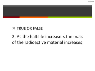 1) It defines key terms like half-life, decay constant, and isotopes.