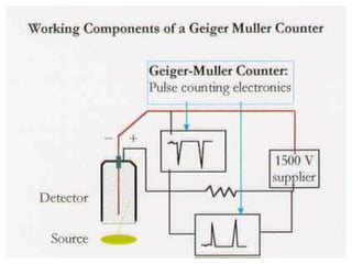 The document provides a comprehensive overview of radioactivity, covering its definition, types of radioactive decay (alpha, beta, gamma), and methods for measuring radioactivity, including Geiger counters and scintillation counters. It also discusses sources of radioactivity, clinical applications like NMR and CT imaging, and the advantages of utilizing radioactive materials. References to relevant literature and the historical development of atomic models are included.