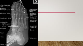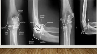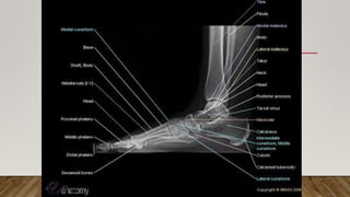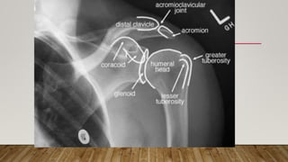This document discusses radiology and the use of x-rays. It begins with an introduction to radiology and x-rays, noting their importance as the "father of medical investigations." It then discusses anatomy as seen on radiographs and whether x-rays are enough. The document goes on to compare gross views to radiological views, noting what each can and cannot show. It highlights important figures in the development of radiology, from x-rays to CT, MRI, and ultrasound. Specific anatomical structures visible on upper and lower limb x-rays are listed. The document concludes by discussing how pathologies appear on x-rays and the importance of clinical history and knowledge when interpreting radiological images.