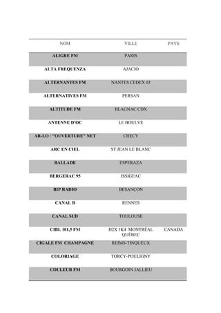 NOM VILLE PAYS