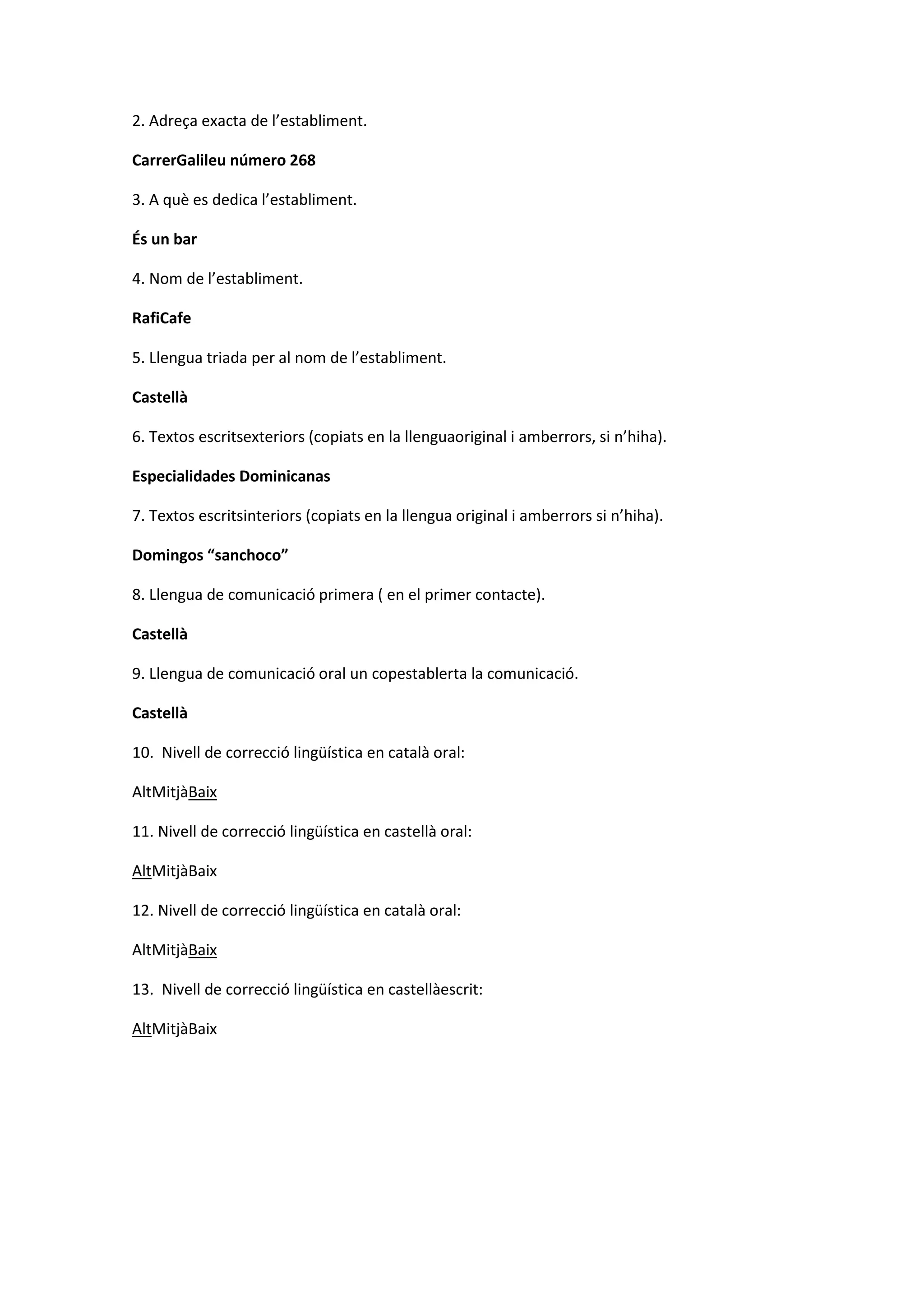 - Quina és la llenguadominant de l’establiment? Per quèaquestallengua i