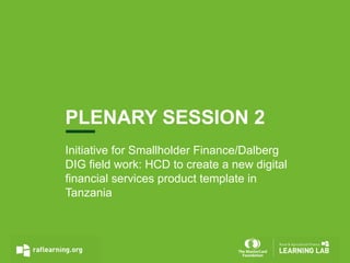 The document summarizes research conducted in Tanzania to design a new digital microcredit product for rural farmers. Key findings include: