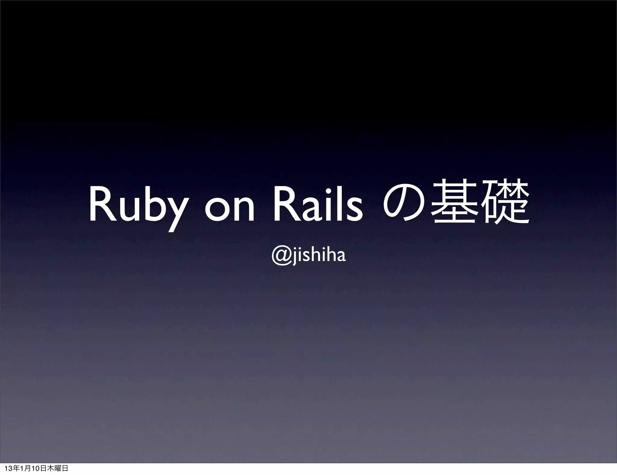 • rails g scaffold Post title:string content:text • bundle exec rake db:migrate • open http://localhost:3000/posts 13年1月10日木曜日