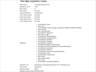 Some features were extracted to gems including Action and Page Caching, Active Resource, and AR Observer. The deprecation policy removes deprecated features in future versions. Strong Parameters replace attr_accessible. Turbolinks improves performance. Russian Doll Caching optimizes caching.