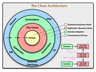 - It describes splitting the application into separate frontend (AngularJS) and backend (Rails API) components. The Rails backend is refactored using patterns like entities, repositories, and presenters to separate concerns and improve testability/reusability.