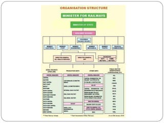 Indian Railways, a state-owned enterprise, is among the world's largest railway networks with 115,000 km of track and 7,172 stations. The system has a rich history dating back to 1851 and is divided into 17 zones, significantly contributing to freight traffic while offering various passenger accommodations. However, it faces financial challenges and is exploring solutions to improve service quality and operational efficiency.