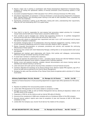 Rajesh Agrawal has over 20 years of experience in fund administration, accounting, and auditing. He currently works as an Assistant Vice President at DBOI Global Services, where he manages the Project Management Office for an important Deutsche Bank program. Previously, he worked at Deutsche Investor Services for over 7 years, taking on roles of increasing responsibility in fund accounting. He has extensive experience in areas like NAV calculation, portfolio management, and client relations. Rajesh Agrawal holds a B.Com degree and is a Chartered Accountant with strong skills in financial reporting, auditing, and systems like SIMCORP Dimension.