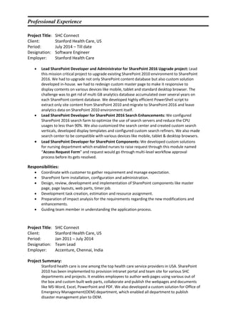 This document contains the resume of Raj Kumar Rurhi. It summarizes his work experience as a project manager and software engineer with over 9 years of experience working on projects involving SharePoint, .NET, and other technologies. It also lists his education including a project management certificate from Stanford University and a bachelor's degree in computer science and engineering. Contact information and a list of technical and managerial skills are also included.