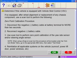 Electronic stability control uses sensors on each wheel and antilock brakes to monitor steering wheel angle and vehicle rotation. When it detects the vehicle may lose control, it automatically brakes wheels as needed and may reduce engine power to help the driver maintain stability, especially during hard turns or on slippery roads. Many vehicle manufacturers have their own names for electronic stability control systems, which will be required in all new vehicles by 2012. Using a scan tool during an alignment allows technicians to reset stability sensors and retrieve any trouble codes.