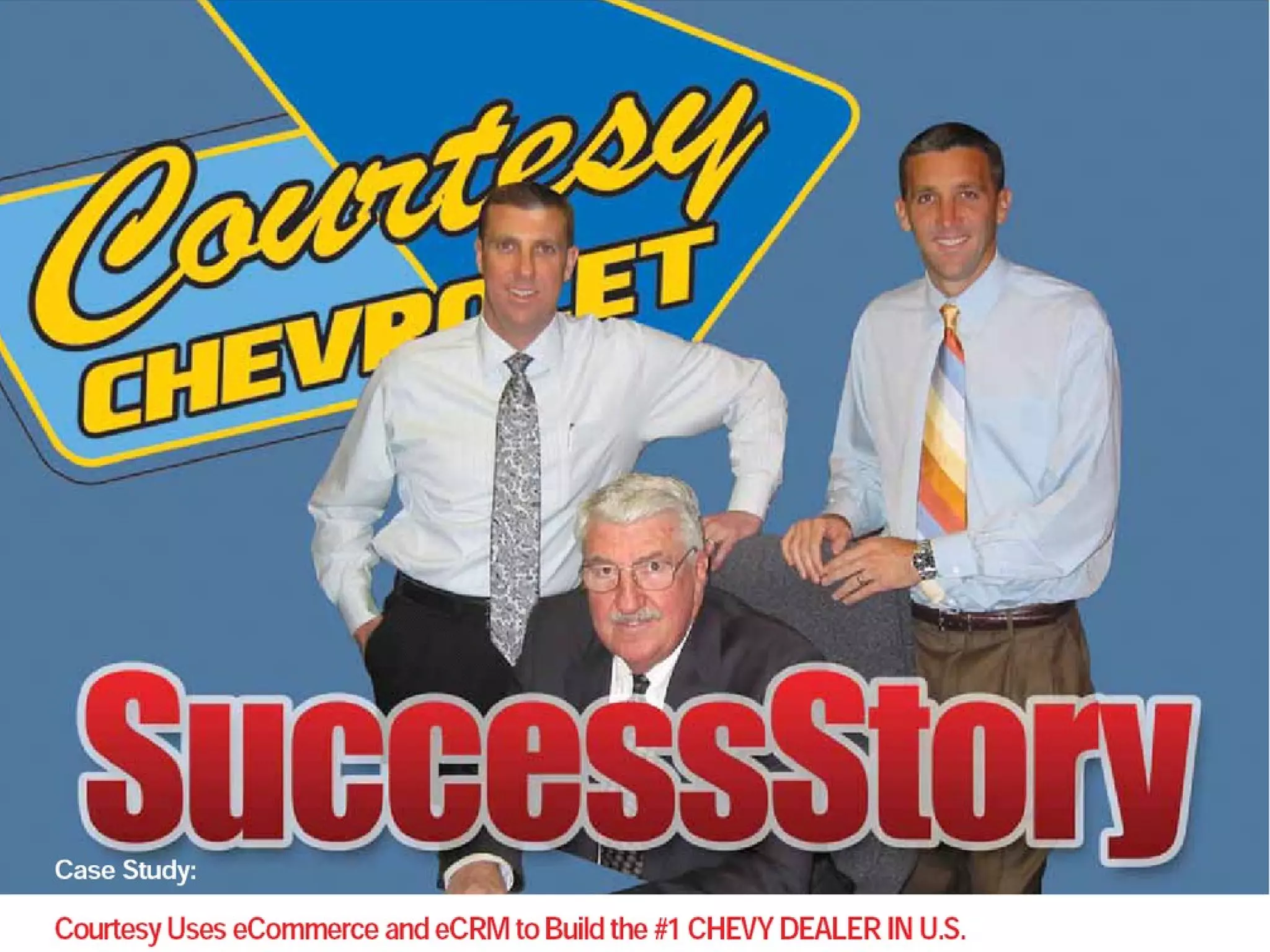 Courtesy Chevrolet has emerged as the top internet retailer of new and used Chevrolets. It uses an integrated online and traditional marketing strategy along with business development centers and dedicated internet sales teams to dominate the online car buying experience. The dealership generates over 60,000 online leads annually and sold over 4,000 vehicles in 2006 through its internet sales department by implementing an effective lead management process. This process involves routing online leads into a customer relationship management tool, having staff make initial contact within 30 minutes, and scheduling test drive appointments to convert leads into sales.