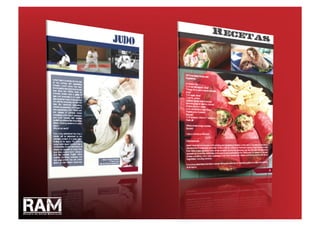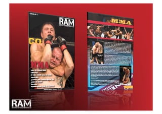 The document outlines a business plan for a proposed martial arts magazine called RAM. The magazine aims to provide high-quality information on martial arts techniques, nutrition, and wellness to its target market of male martial artists aged 16-25. It will differentiate itself as the first local product of its kind and will be supported by a team of experts in finance, public relations, sales, and research. The business objectives are to gain sponsors, subscribers and market share in its first year while promoting martial arts in Ecuador. Success is anticipated despite challenges, given the growing popularity of martial arts in the local city.