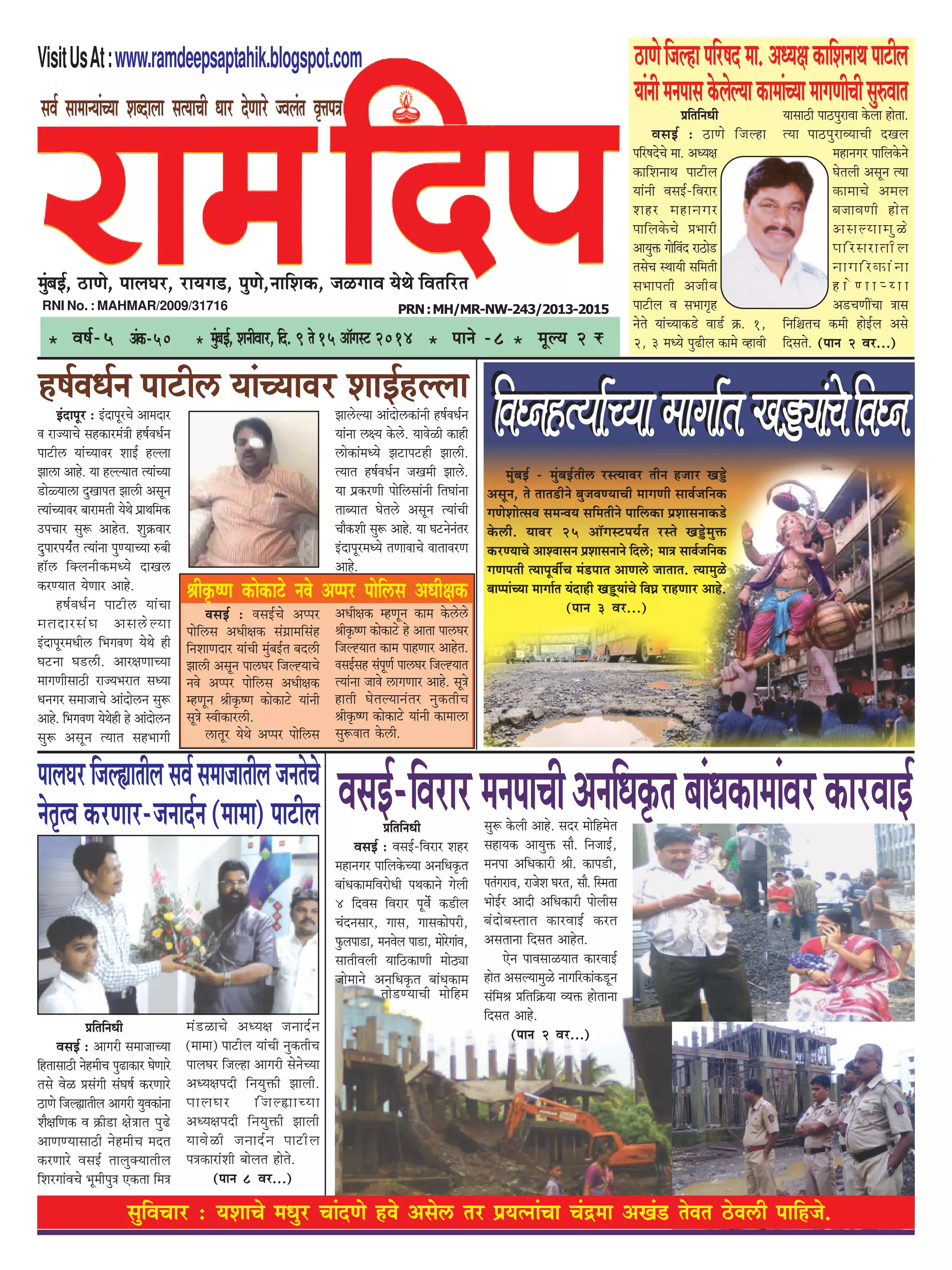 ceOegj ÛeeboCes nkes Demes} lej heÇÙelveebÛee Ûebõcee DeKeb[ leskele "ske}er heeefnpes. meJe& meeceevÙeebÛÙee Meyoeuee melÙeeÛeer Oeej osCeejs pJeueble Je=òehe$e cegbyeF&, "eCes, heeueIej, jeÙeie[, hegCes,veeefMekeâ, peUieeJe ÙesLes efJeleefjle RNI No. : MAHMAR/2009/31716 PRN:MH/MR-NW-243/2013-2015 * Je<e&-5 * heeves -8 * cetuÙe 2 j * cegbyeF&,MeveerJeej,efo.9les15Dee@iemš2014Debkeâ-50 ØeefleefveOeer JemeF& : "eCes efpeune heefj<eosÛes cee. DeOÙe#e keâeefMeveeLe heešerue Ùeebveer JemeF&-efJejej Menj ceneveiej heeefuekesâÛes ØeYeejer DeeÙegòeâ ieesefJebo je"es[ lemesÛe mLeeÙeer meefceleer meYeeheleer DepeerJe heešerue Je meYeeie=n vesles ÙeebÛÙeekeâ[s Jee[& ›eâ. 1, 2, 3 ceOÙes heg{erue keâeces JneJeer Ùeemee"er hee"hegjeJee kesâuee neslee. lÙee hee"hegjeJÙeeÛeer oKeue ceneveiej heeefuekesâves Iesleueer Demetve lÙee keâeceeÛes Deceue yepeeJeCeer nesle DemeuÙeecegUs heefjmejeleerue veeieefjkeâebvee n e s C e e N Ù e e De[ÛeCeeRÛee $eeme efveef§eleÛe keâceer nesF&ue Demes efomeles. (heeve 2 Jej...) JemeF&-efJejejceveheeÛeerDeveefOeke=âleyeebOekeâeceebJejkeâejJeeF&ØeefleefveOeer JemeF& : JemeF&-efJejej Menj ceneveiej heeefuekesâÛÙee DeveefOeke=âle yeebOekeâeceefJejesOeer heLekeâeves iesueer 4 efoJeme efJejej hetJe&s keâ[erue Ûebovemeej, ieeme, ieemekeâeshejer, Hegâuehee[e, ceveJesue hee[e, ceesjsieebJe, meeleerJeueer Ùeeef"keâeCeer cees"Ÿee peesceeves DeveefOeke=âle yeebOekeâece meg¤ kesâueer Deens. meoj ceesefncesle meneÙekeâ DeeÙegòeâ meew. efvepeeF&, cevehee DeefOekeâejer ßeer. keâehe[er, helebiejeJe, jepesMe Iejle, meew. efmcelee YeesF&j Deeoer DeefOekeâejer heesueerme yeboesyemleele keâejJeeF& keâjle Demeleevee efomele Deensle. Ssve heeJemeeUÙeele keâejJeeF& nesle DemeuÙeecegUs veeieefjkeâebkeâ[tve mebefceße Øeefleef›eâÙee JÙeòeâ nesleevee efomele Deens. (heeve 2 Jej...) lees[CÙeeÛeer ceesefnce "eCesefpeuneheefj<eocee.DeOÙe#ekeâeefMeveeLeheešerue ÙeebveerceveheemekesâuesuÙeekeâeceebÛÙeeceeieCeerÛeermeg®Jeele heeueIejefpeu¢eeleeruemeJe&meceepeeleeruepevelesÛes vesle=lJe keâjCeej-peveeo&ve (ceecee) heešerue ØeefleefveOeer JemeF& : Deeiejer meceepeeÛÙee efnleemee"er vesnceerÛe heg{ekeâej IesCeejs lemes JesU Øemebieer mebIe<e& keâjCeejs "eCes efpeu¢eeleerue Deeiejer ÙegJekeâebvee Mew#eefCekeâ Je ›eâer[e #es$eele heg{s DeeCeCÙeemee"er vesnceerÛe ceole keâjCeejs JemeF& leeuegkeäÙeeleerue efMejieebJeÛes Yetceerheg$e Skeâlee efce$e ceb[UeÛes DeOÙe#e peveeo&ve (ceecee) heešerue ÙeebÛeer vegkeâleerÛe heeueIej efpeune Deeiejer mesvesÛÙee DeOÙe#eheoer efveÙegòeâer Peeueer. heeueIej efpeu¢eeÛÙee DeOÙe#eheoer efveÙegòeâer Peeueer ÙeeJesUer peveeo&ve heešerue he$ekeâejebMeer yeesuele nesles. (heeve 8 Jej...) VisitUsAt:www.ramdeepsaptahik.blogspot.com n<e&keOe&ve heešer} ÙeebÛÙeekej MeeF&nuueeFboehetj : FboehetjÛes Deeceoej ke jepÙeeÛes menkeâejceb$eer n<e&keOe&ve heešer} ÙeebÛÙeekej MeeF& nuuee Pee}e Deens. Ùee nuuÙeele lÙeebÛÙee [esàÙee}e ogKeehele Pee}er Demetve lÙeebÛÙeekej yeejeceleer ÙesLes heÇeLeefcekeâ GheÛeej meg™ Deensle. Meg›eâJeej ogheejheÙe&ble lÙeebvee hegCÙeeÛÙee ®yeer ne@} efkeäueveerkeâceOÙes oeKe} keâjCÙeele ÙesCeej Deens. n<e&keOe&ve heešer} ÙeebÛee celeoejmebIe Deme}suÙee FboehetjceOeer} efYeiekeCe ÙesLes ner Iešvee Ie[}er. Deej#eCeeÛÙee ceeieCeermee"er jepÙeYejele meOÙee Oeveiej meceepeeÛes Deeboes}ve meg™ Deens. efYeiekeCe ÙesLesner ns Deeboes}ve meg™ Demetve lÙeele menYeeieer Pee}suÙee Deeboes}keâebveer n<e&keOe&ve Ùeebvee }#Ùe kesâ}s. ÙeekesUer keâener }eskeâebceOÙes Pešehešner Pee}er. lÙeele n<e&keOe&ve peKeceer Pee}s. Ùee heÇkeâjCeer heesef}meebveer efleIeebvee leeyÙeele Iesle}s Demetve lÙeebÛeer ÛeewkeâMeer meg™ Deens. Ùee Iešvesveblej FboehetjceOÙes leCeekeeÛes keeleekejCe Deens. kemeF& : kemeF&Ûes Dehhej heesef}me DeOeer#ekeâ mebieÇeceefmebn efveMeeCeoej ÙeebÛeer cegbyeF&le yeo}er Pee}er Demetve hee}Iej efpeuåÙeeÛes vekes Dehhej heesef}me DeOeer#ekeâ cnCetve ßeerke=â<Ce keâeskeâešs Ùeebveer met$es mkeerkeâej}er. }eletj ÙesLes Dehhej heesef}me DeOeer#ekeâ cnCetve keâece kesâ}s}s ßeerke=â<Ce keâeskeâešs ns Deelee hee}Iej efpeuåÙeele keâece heenCeej Deensle. kemeF&men mebhetCe& hee}Iej efpeuåÙeele lÙeebvee peekes }eieCeej Deens. met$es neleer IesleuÙeeveblej vegkeâleerÛe ßeerke=â<Ce keâeskeâešs Ùeebveer keâecee}e meg™keele kesâ}er. ßeerke=â<Ce keâeskeâešs vekes Dehhej heesef}me DeOeer#ekeâ efJeIvenlÙee&ÛÙee ceeiee&le KeñŸeebÛesefJeIve cegbyeF& - cegbyeF&leer} jmlÙeekej leerve npeej Keñs Demetve, les leele[erves yegpekeCÙeeÛeer ceeieCeer meeke&peefvekeâ ieCesMeeslmeke mecevkeÙe meefceleerves heeef}keâe heÇMeemeveekeâ[s kesâ}er. Ùeekej 25 Dee@iemšheÙe&ble jmles Keñscegòeâ keâjCÙeeÛes DeeMkeemeve heÇMeemeveeves efo}s; cee$e meeke&peefvekeâ ieCeheleer lÙeehetkeer&Ûe ceb[heele DeeCe}s peeleele. lÙeecegUs yeehheebÛÙee ceeiee&le Ùeboener KeñdÙeebÛes efkeIe> jenCeej Deens. (heeve 3 Jej...) efJeIvenlÙee&ÛÙee ceeiee&le KeñŸeebÛesefJeIve