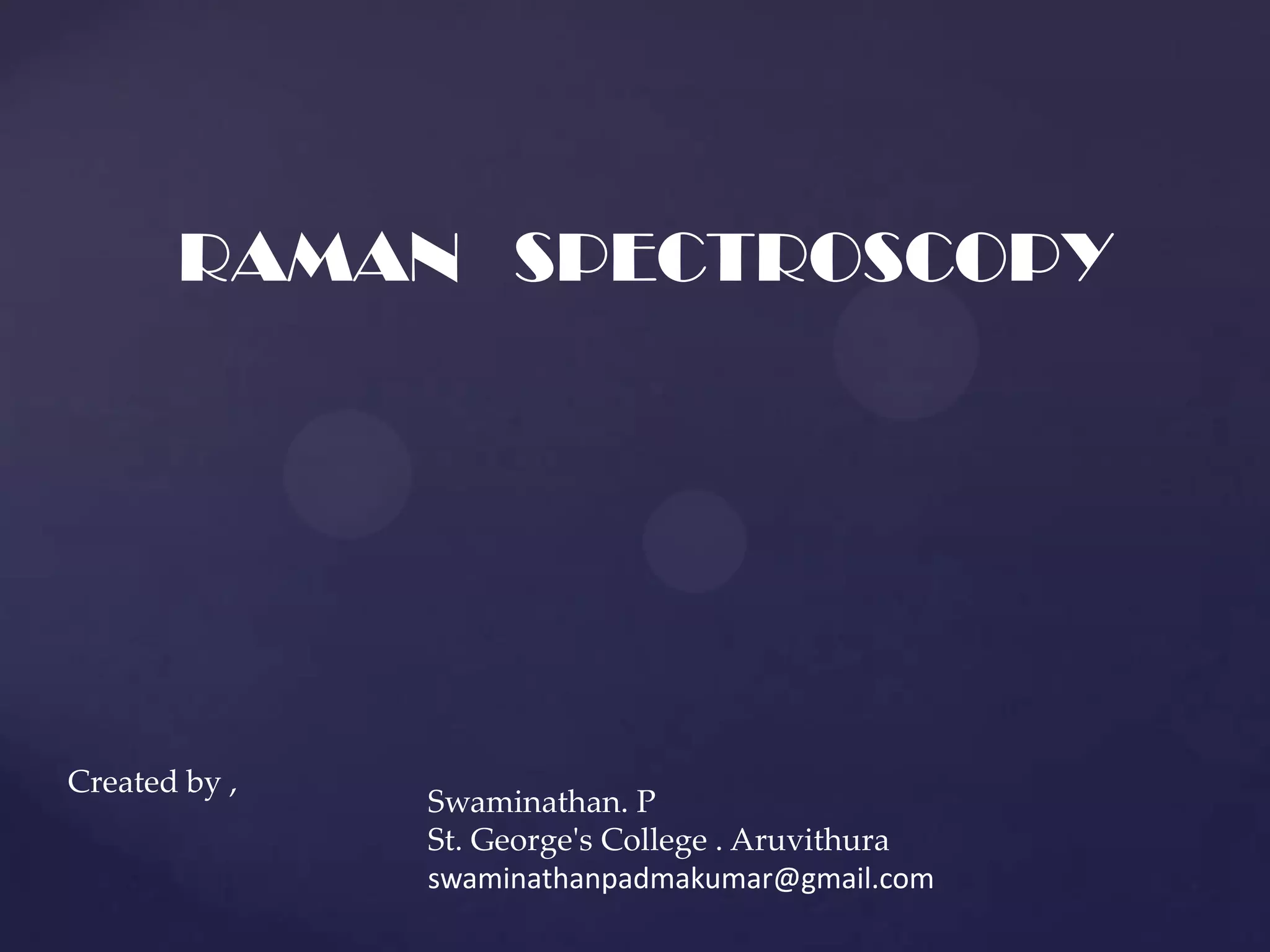 Raman spectroscopy is a spectroscopic technique that uses laser light to study vibrational, rotational, and other low-frequency modes in a system. It relies on inelastic scattering, or Raman scattering, of monochromatic light, usually from a laser in the visible, near infrared, or near ultraviolet range. The laser light interacts with molecular vibrations, phonons or other excitations in the system, resulting in the energy of the laser photons being shifted up or down. The shift in energy gives information about the vibrational modes in the system. Raman spectroscopy is commonly used in chemistry to provide a fingerprint by which molecules can be identified. It has applications in fields such as physics, materials science, biology, medicine and