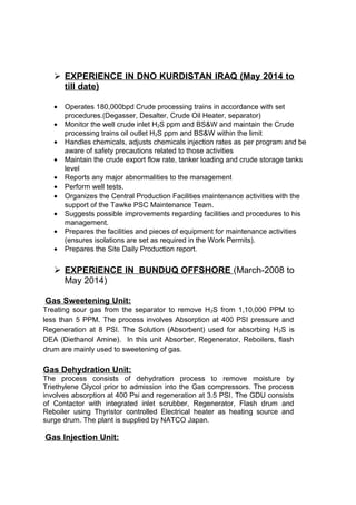 Ramamoorthy Kailasanathan is an Indian national with over 15 years of experience in oil, gas, fertilizer, and chemical plants. He holds a Diploma in Chemical Technology and currently works as a Team Leader for DNO Kurdistan Iraq. He has extensive experience operating and maintaining crude oil processing trains, gas sweetening units, gas dehydration units, water injection facilities, and ammonia storage tanks. He is proficient in safety procedures, computer skills, and speaks English and Tamil fluently.