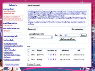 ระบบ e-Commerceระบบหลังร้าน ระบบจัดการของคงคลัง ระบบสั่งซื้อ ระบบบัญชี F I R E W A L L Computer system Computer and Browser Internet ผู้ผลิตหรือผู้ที่เกี่ยวข้อง ระบบหน้าร้าน Web catalog Webconnect server F I R E W A L L Web Commerce server ผู้ซื้อ ธนาคาร Payment Gateway