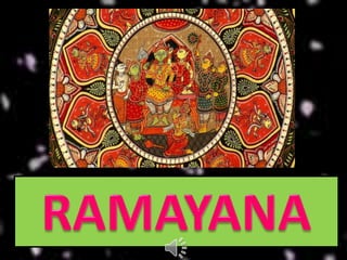 Dasaratha was the king of Ayodhya who had four sons, with Rama as the eldest. Rama's wife Sita was abducted by Ravana, the king of Lanka, but Rama allied with monkeys and built a bridge to Lanka to defeat Ravana in battle and rescue Sita. The ideals of dharma, loyalty, devotion and the importance of one's duty are key themes exemplified through the characters and their actions in the epic.