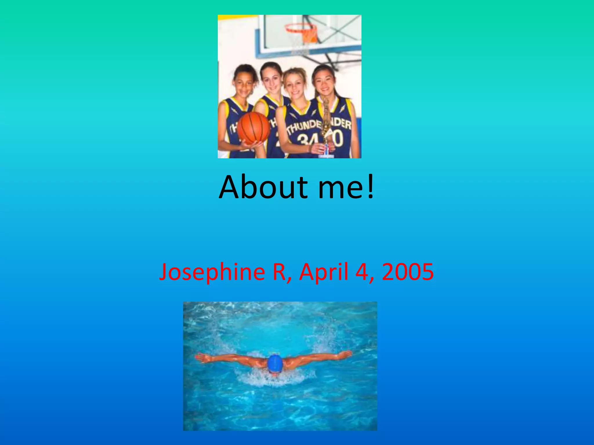 Josephine enjoys swimming as her favorite sport because she has friends on her swim team and likes setting records. Her favorite food is chili because she finds it sweet, especially Skyline chili. Tigers are her favorite animal as her swim team is called the Fast Tigers, and she thinks they can act like pets.