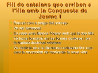 Fill de catalansque arriben a l’illa amb la Conquesta de Jaume I Educat com a patge del príncep Va ser senescal Es casa amb Blanca Picany amb qui té dos fills Té bona formació en les formes corteses i en la tradició doctrinal cristiana Va dedicar-se a la literatura cortesana fins que sent la necessitat de reorientar la seua vida