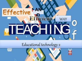 This document discusses Educational Technology 2 which focuses on integrating technology into teaching and learning. It aims to introduce, reinforce, supplement and extend knowledge to learners while enhancing instruction through technology. The document outlines the goals of the course which are to teach the use of technology in instruction, impart learning experiences in instructional technology supported planning, acquaint students with IT learning theories, teach how to use and evaluate computer-based resources, and engage learners on technology integration issues to develop higher-level thinking. It also discusses bridging the generation gap in education through technology and the role of technology in developing students' higher-order thinking skills.