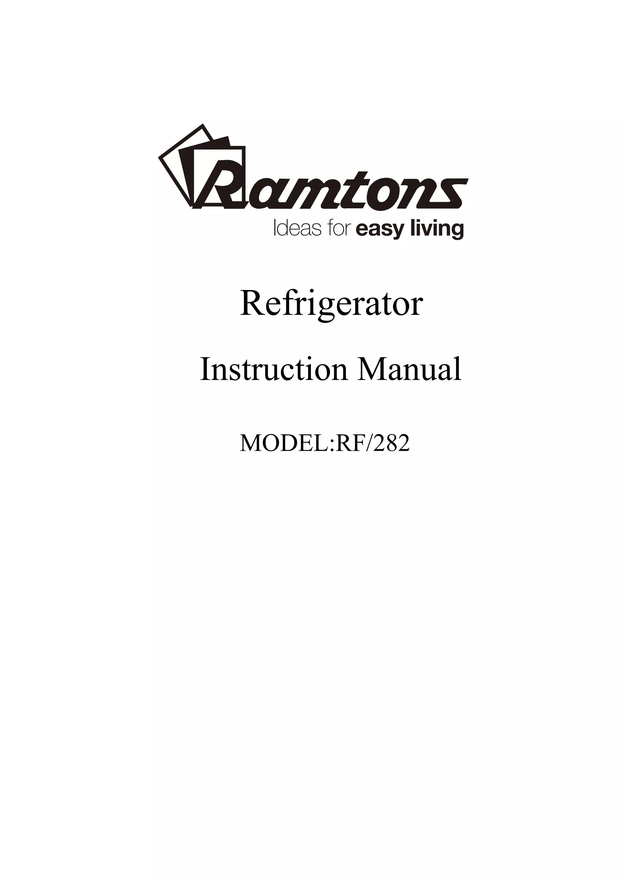 This document provides instruction and safety information for a refrigerator model RF/282. It contains: