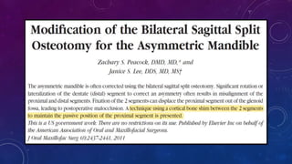 This document provides information on the Ramus osteotomy procedure, specifically the sagittal split osteotomy (SSO). It discusses the history and evolution of the SSO technique from its early developments to modern procedures. Key steps of the current SSO procedure are outlined, including incision, dissection, identification of anatomical landmarks, and performing the osteotomies along the medial ramus, vertical body, and buccal cortex before splitting the mandible. The SSO allows correction of mandibular deformities by repositioning the proximal and distal segments.