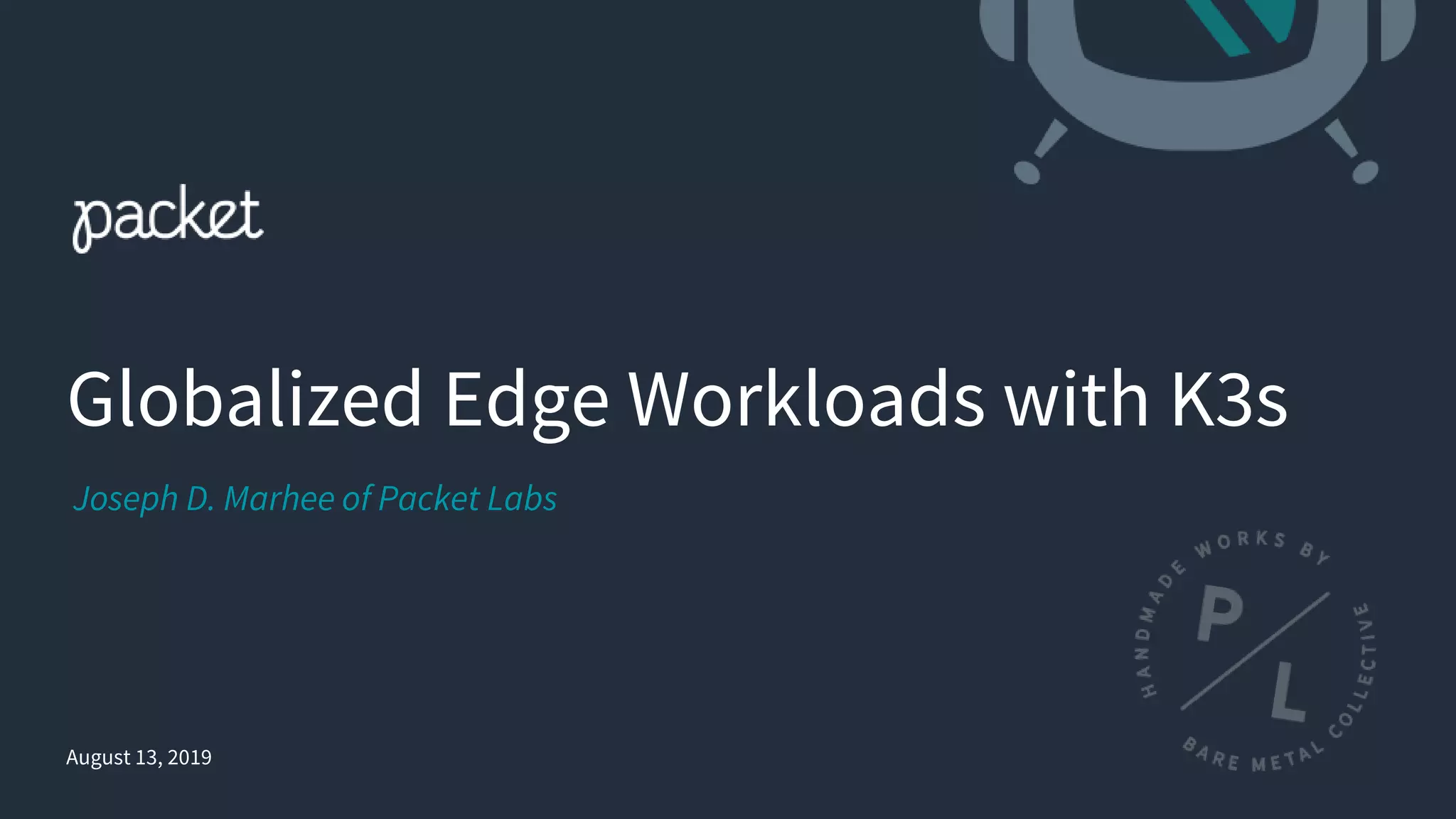 This document discusses using K3s (a lightweight Kubernetes distribution) to deploy globalized edge workloads on bare metal servers located at infrastructure edge locations. It provides examples of edge architectures using K3s for database replication, function-as-a-service workloads, and content delivery. Packet Labs enhances these patterns by providing bare metal servers across multiple core and edge sites with network automation and anycast IP addressing to easily deploy and manage K3s clusters globally. The document demonstrates deploying a location-aware application on K3s using orchestration tools to provision a standardized cluster pool across Packet infrastructure.