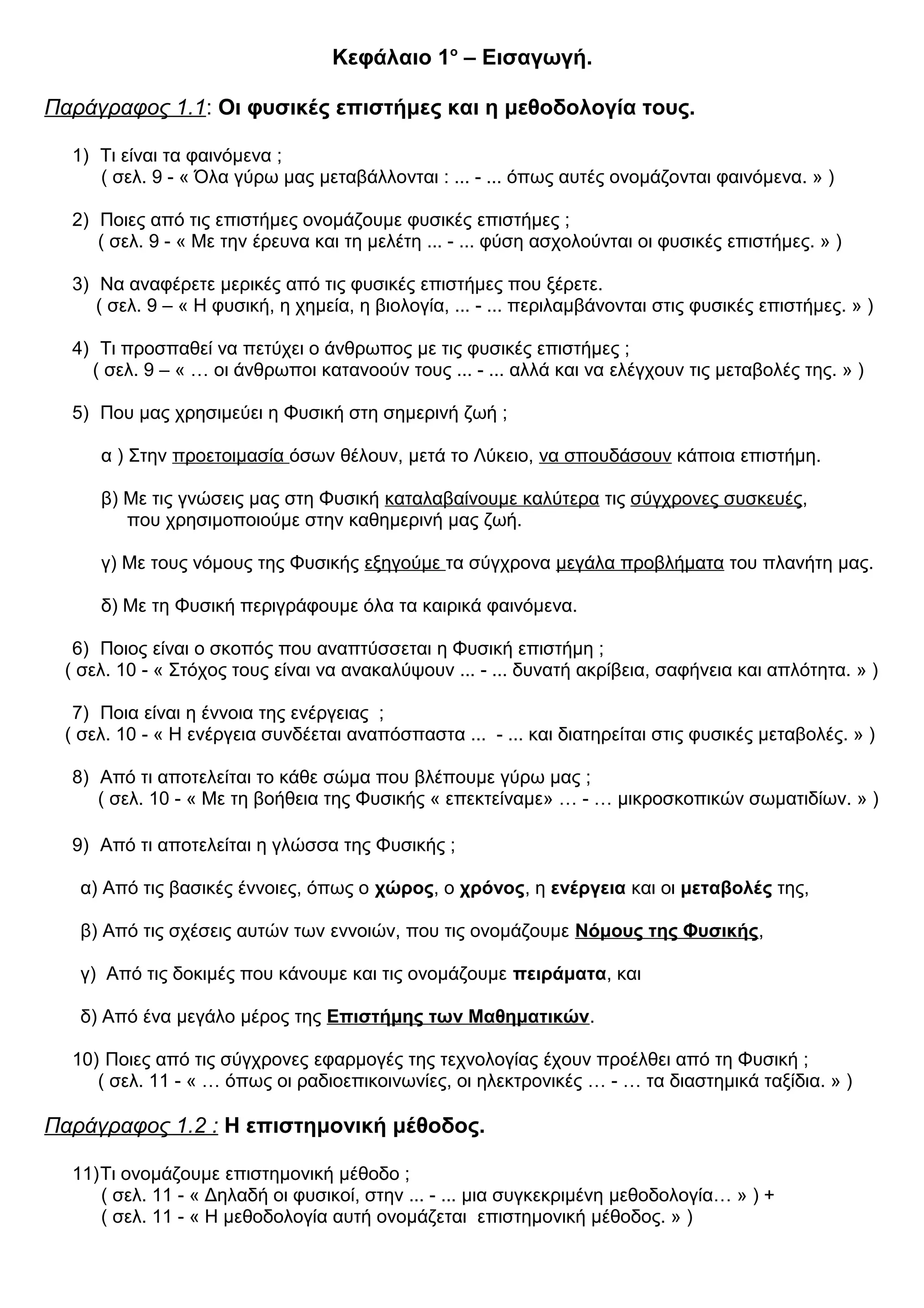 ( σελ. 9 - « Με την έρευνα και τη μελέτη ... - ... φύση ασχολούνται οι φυσικές επιστήμες. » )