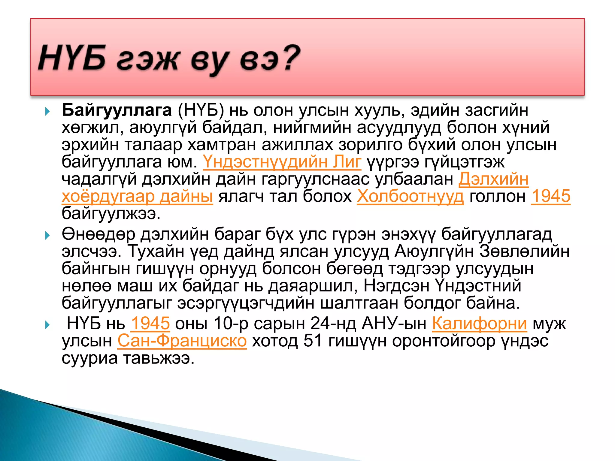 нүб түүний системийн байгууллага, олон улсын бага хурал PPTX