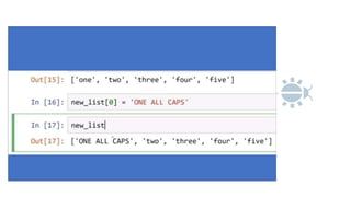 - Lists are mutable, ordered, heterogeneous collections that can contain duplicates. They are useful when data needs to change frequently.