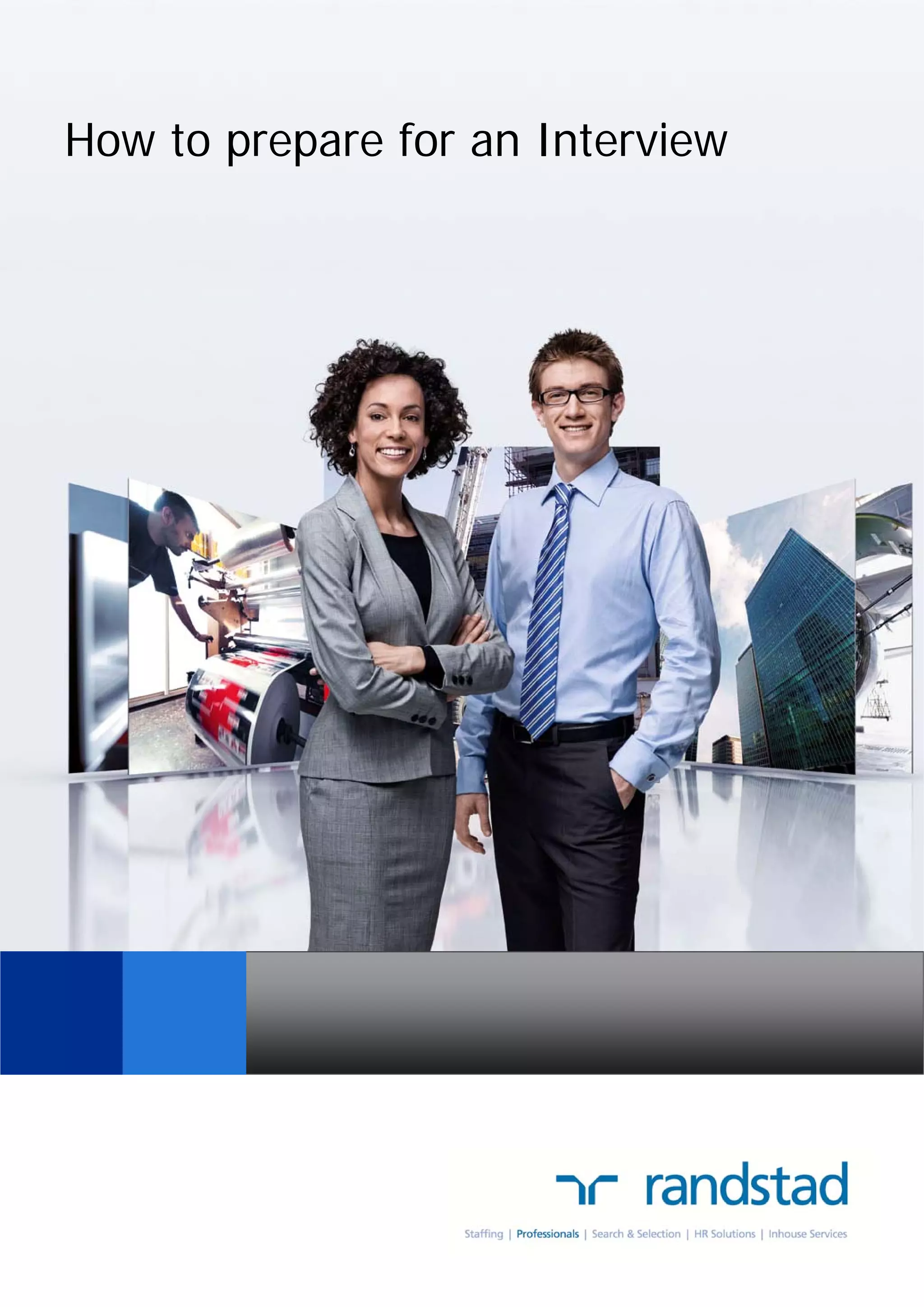 The document provides comprehensive guidance on how to prepare for job interviews, emphasizing the importance of preparation, self-presentation, and understanding the interview process. Candidates are encouraged to research the company, practice summarizing their career, and maintain a positive frame of mind during the interview, while also adhering to key rules for effective communication. Additionally, it details common interview questions and the significance of engaging with the interviewer to ensure a two-way dialogue.