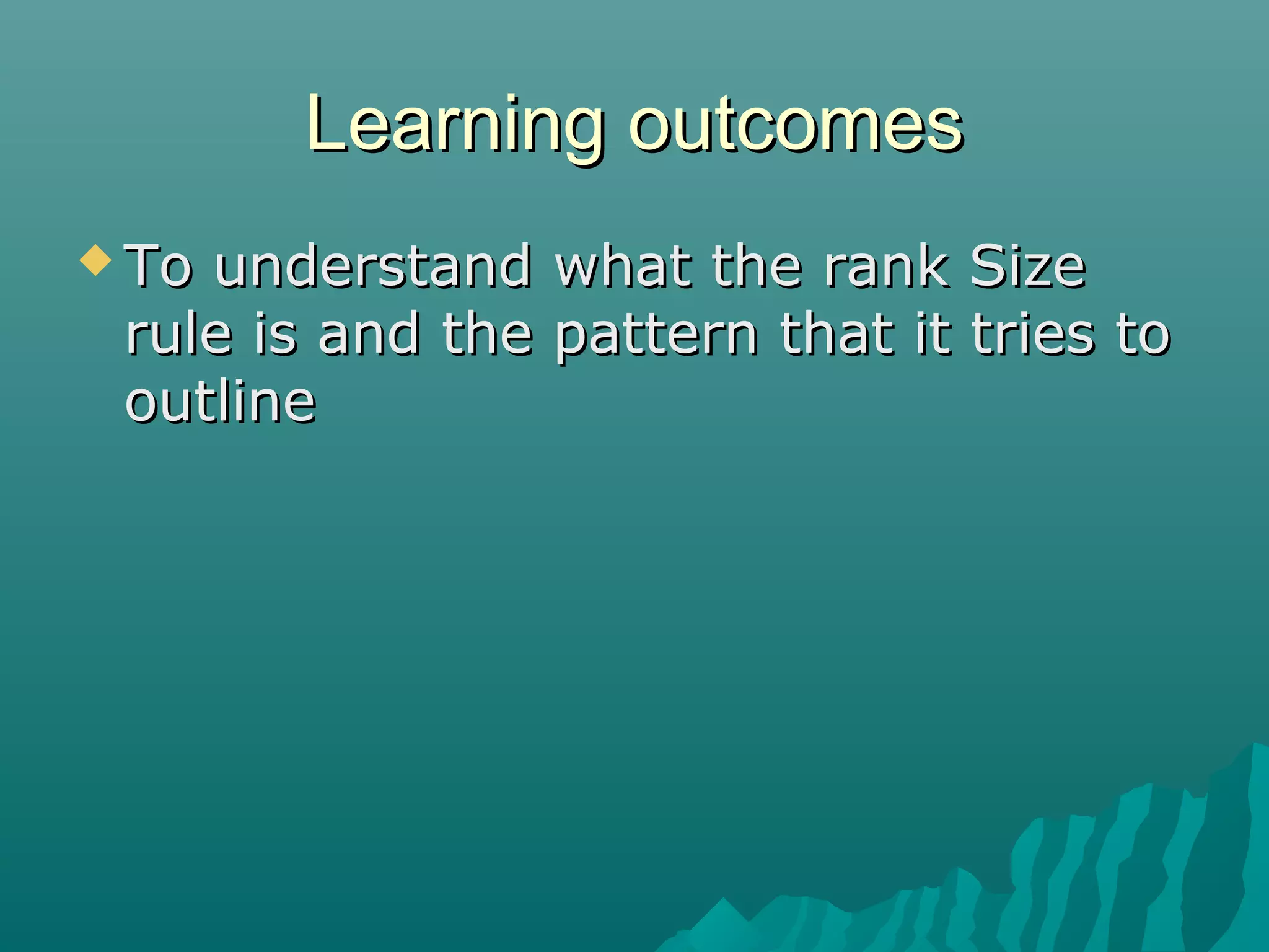 The rank size rule attempts to establish a numerical relationship between population sizes of settlements within a country or region. It ranks settlements by population size, with the largest first. It assumes the second largest settlement will be half the population of the largest, the third largest a third, and so on. While variations often occur, it provides a model for comparing city population distributions. Exceptions include primate cities, where one city dominates population size, and binary distributions, where two cities are of almost equal size.