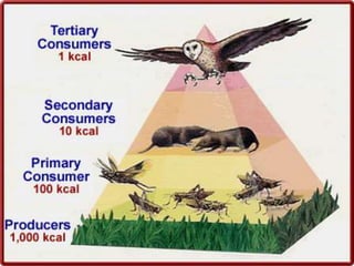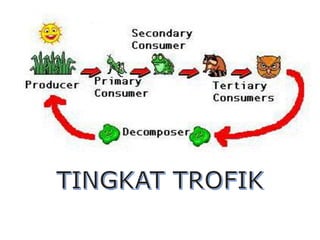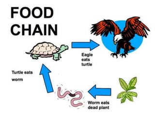Rantai makanan menunjukkan aliran energi dari satu organisme ke organisme lainnya dalam ekosistem, dimulai dari produsen seperti tumbuhan dan alga yang dapat melakukan fotosintesis hingga konsumen tingkat akhir seperti beruang kutub. Rantai makanan terbentuk menjadi jaring-jaring makanan yang saling terkait di darat maupun laut, sementara energi mengalir dan menipis secara bertahap dari tingkat trofik ke