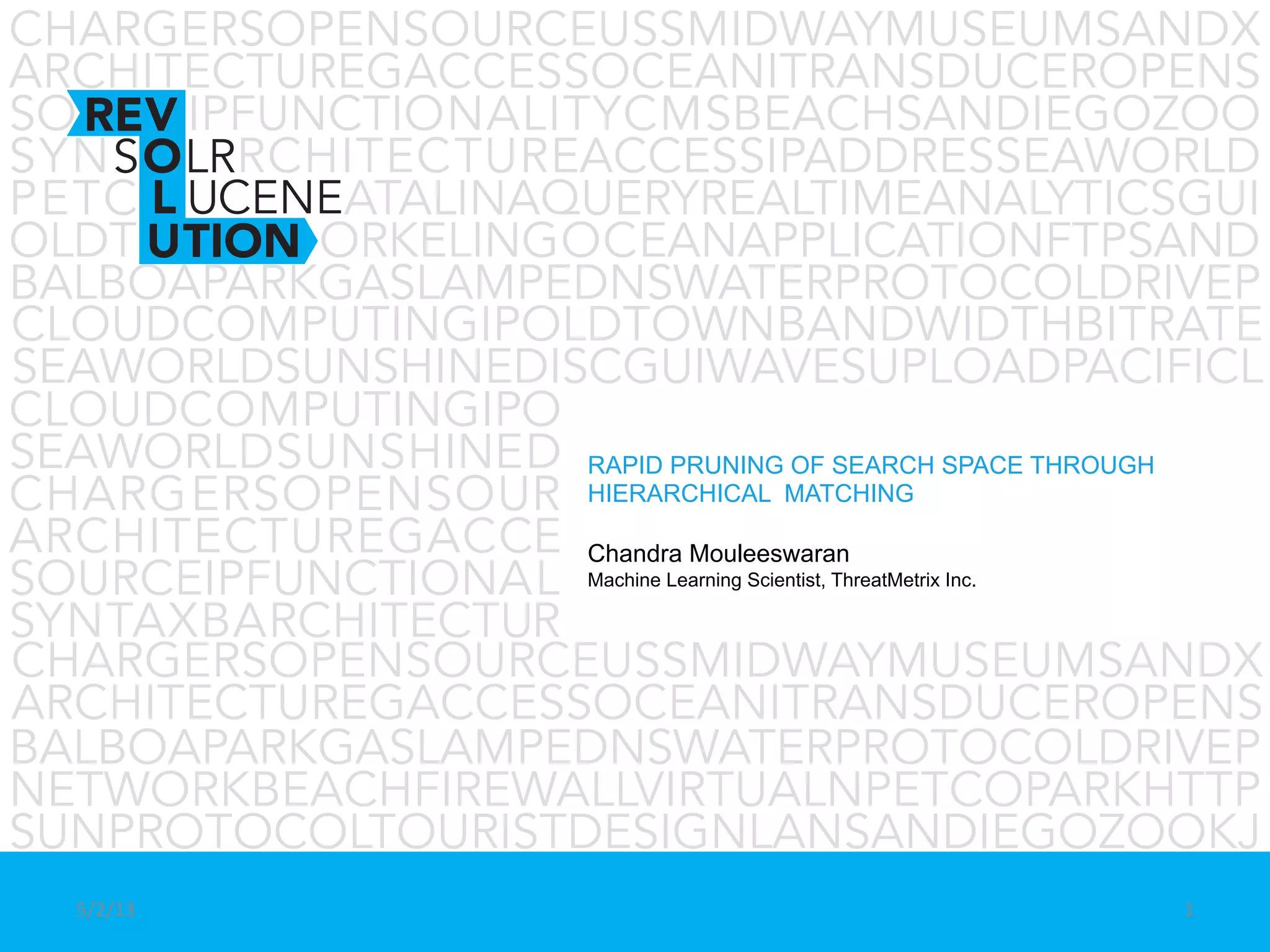 The document discusses the hierarchical matching approach to rapidly prune search space for device identification tasks faced by machine learning applications. It highlights the challenges of precision, latency, and the need for enterprise-level solutions, while exploring various methodologies including rules engines, learning models, and vector space models. The results demonstrate the effectiveness of these approaches in enhancing accuracy and response times during the classification of devices.