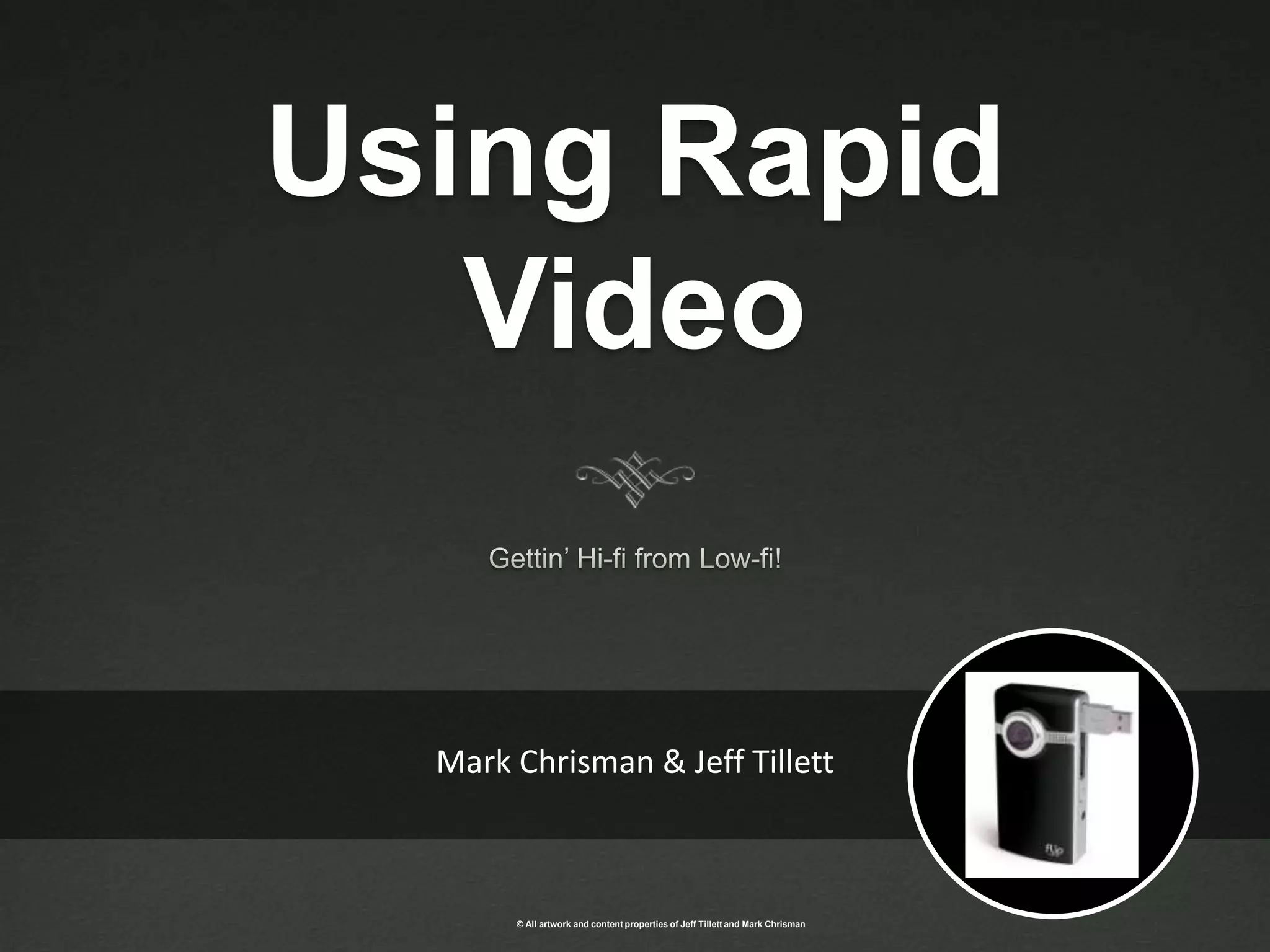 This document provides an overview of using rapid video for training. It discusses best practices for video production including pre-production, the video shoot, and post-production. Pre-production involves instructional design, planning, storyboarding, casting, and logistics. During the shoot, considerations include equipment, shooting techniques, framing shots, lighting, and directing. Post-production covers software, hardware, editing, and adding extras like motion graphics. The presenters provide examples and hands-on stations to explore equipment and editing.