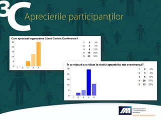 Conferința 'Client Centric' a avut loc pe 19 noiembrie 2013, concentrându-se pe inovații în managementul relațiilor cu clienții și a fost organizată de iQuest. Speakeri remarcați, precum Bogdan Oros și Monica Bîrlea, au discutat despre soluții CRM și importanța feedback-ului clienților, subliniind că clienții sunt oameni, nu companii. Evenimentul a fost bine primit de participanți, care au apreciat organizarea și valoarea informațiilor prezentate.