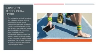 Il documento analizza l'evoluzione del rapporto tra tecnologia e sport, evidenziando come la tecnologia abbia reso lo sport più accessibile e personalizzato attraverso una varietà di applicazioni. Vengono menzionate diverse app, come yoga.com, Nike Training Club e Sweat, che offrono programmi di allenamento, nutrizione e supporto per migliorare le capacità fisiche. La disponibilità di risorse gratuite e professionali online ha reso possibile l'accesso allo sport anche per chi è meno incline a praticarlo.