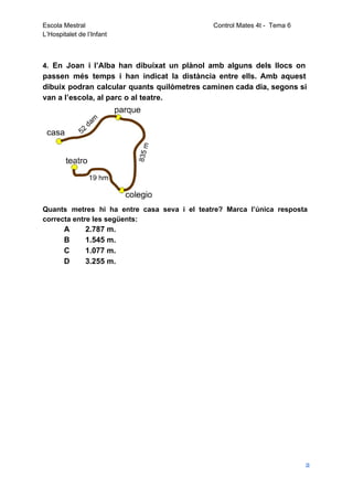 4. EnJoan i l’Alba han dibuixat un plànol amb alguns dels llocs on