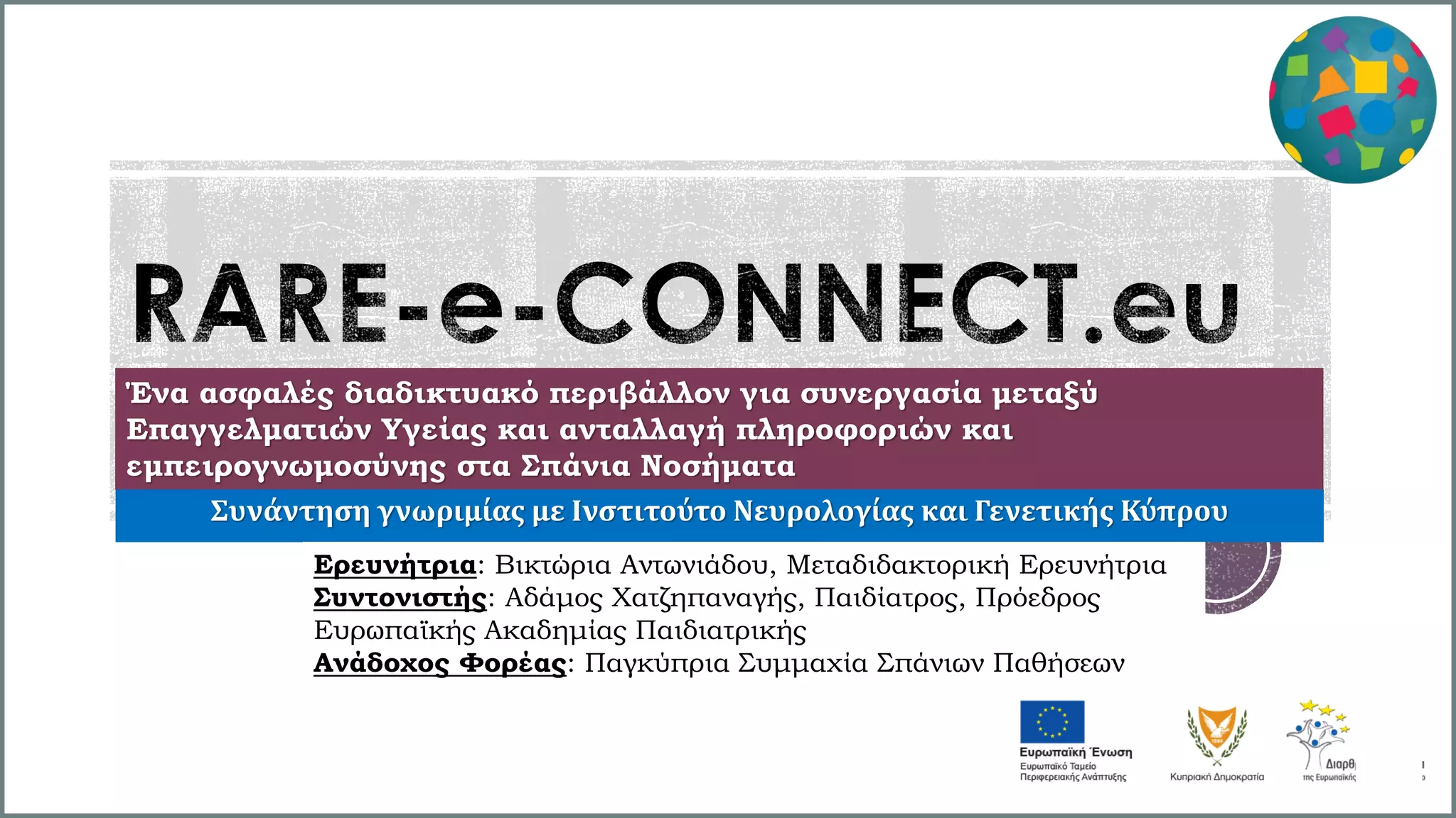 Healthcare Professionals in the field of rare diseases working in Cyprus can connect with colleagues in different cities and locations in Cyprus in Europe and other countries and share knowledge on topics of concern in the context of patient management.