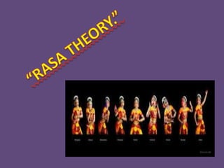 1. The document discusses the Rasa theory of aesthetics from the ancient Indian text Natyasastra by Bharata Muni. 2. It defines Rasa as the aesthetic experience or flavor extracted from a work of art through a combination of determinants, consequents, and transitory states that trigger emotions. 3. The document lists the nine primary Rasas or aesthetic flavors as Shringara, Hasya, Raudra, Karuna, Bibhatsya, Bhayanaka, Veera, Adbhuta, and Shanta.