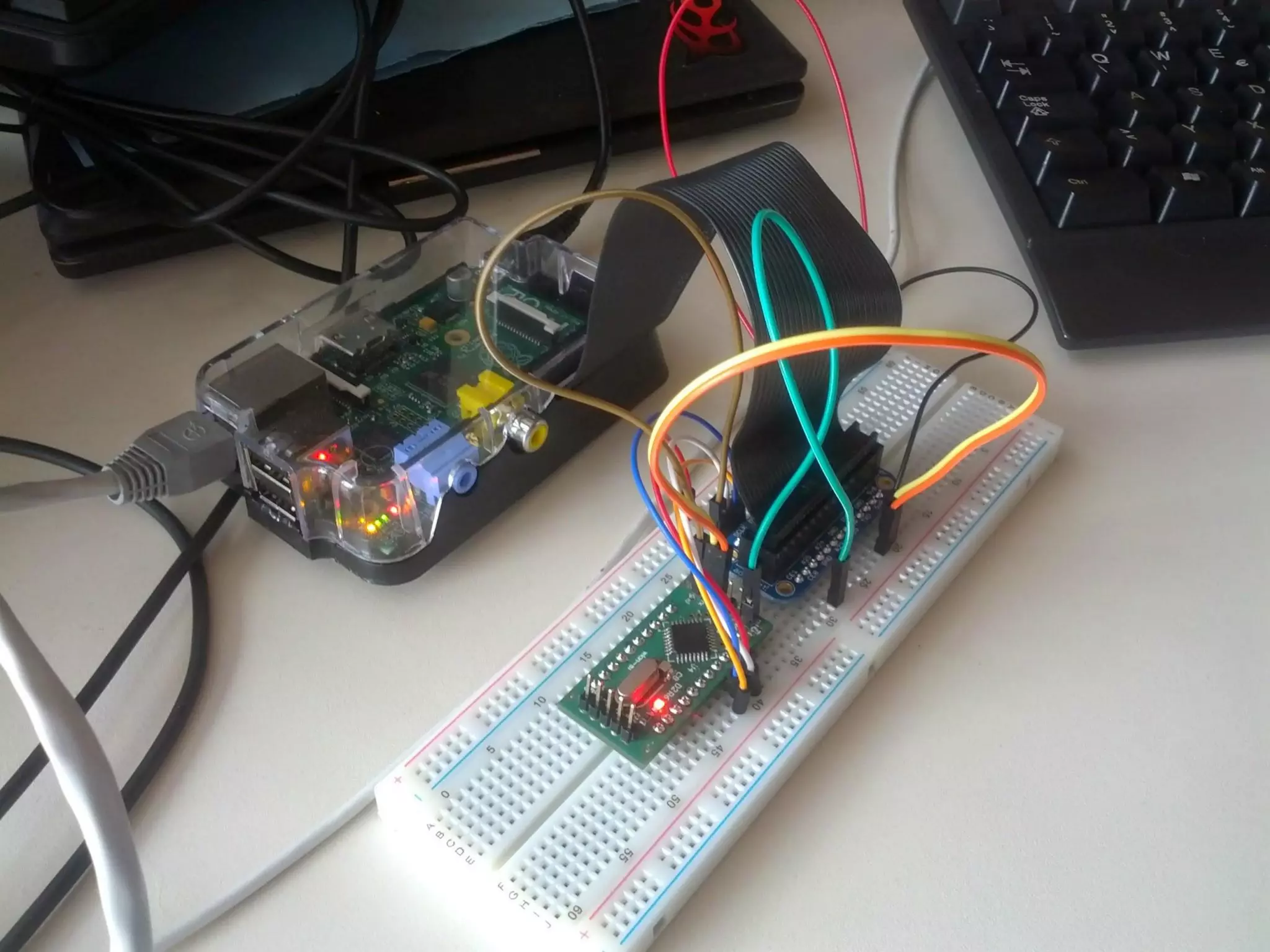 This document discusses using a Raspberry Pi as a versatile development and debugging platform for programming various microcontrollers and devices via its GPIO pins. It provides examples of using the Raspberry Pi to program AVR microcontrollers, CPLDs, FPGAs, and CC110x chips via tools like OpenOCD, urjtag, and avrdude. It also shows examples of interfacing sensors, displays, and other peripherals to the Raspberry Pi GPIO for experimentation and prototyping.