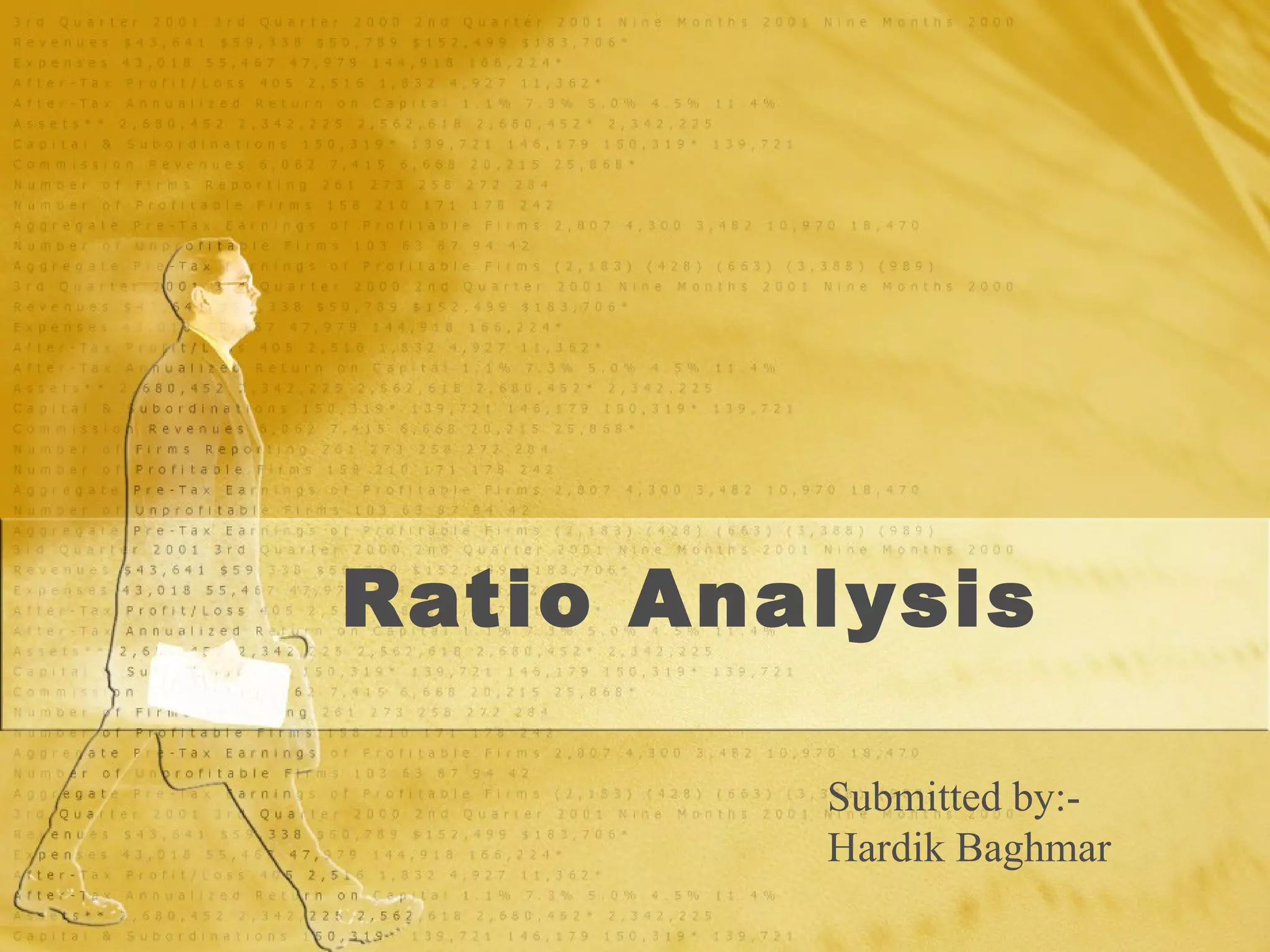 The document discusses various types of financial ratios used to analyze companies. It describes liquidity ratios like current ratio and acid test ratio which measure a company's ability to meet short-term obligations. Leverage ratios like debt-equity ratio and debt-asset ratio assess the financial risk from a company's use of debt. Efficiency ratios examine how effectively a company uses its assets. Profitability ratios evaluate a company's net profit margins and returns on assets and equity.