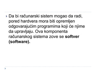 računarskog sistema zove se softver