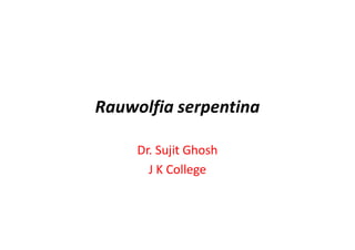Rauwolfia serpentina, also known as Indian snakeroot or sarpagandha, is a plant that contains alkaloids that are effective in treating high blood pressure. High blood pressure increases the workload of the heart and blood vessels and can damage organs. Rauwolfia alkaloids work by controlling nerve impulses along pathways in the heart and blood vessels, which helps to lower blood pressure. The plant is commonly used in Ayurvedic and other traditional medicine systems to treat hypertension and other conditions.