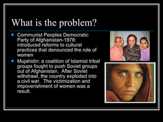 The Revolutionary Association of the Women of Afghanistan (RAWA) was established in 1977 to fight for women's rights and equality in Afghanistan. RAWA believes that freedom and democracy must be achieved through the people of a country fighting for it, not being donated. Currently, RAWA continues to advocate for women's rights and hold events to raise awareness about the situation in Afghanistan, where religion dictates law and women are often regarded as property with little recognition. To support their efforts, readers are encouraged to subscribe to RAWA's mailing list to stay informed about their work worldwide.