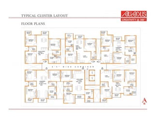 This site plan document outlines the layout of multiple clusters (A-G) within a larger plot area of 138664.99 square feet. It specifies an allowable floor area ratio (FAR) of 1.75, which allows for a maximum built-up area of 242663.7325 square feet across the clusters. The clusters are arranged around a central club house with access provided via the main site entry points.