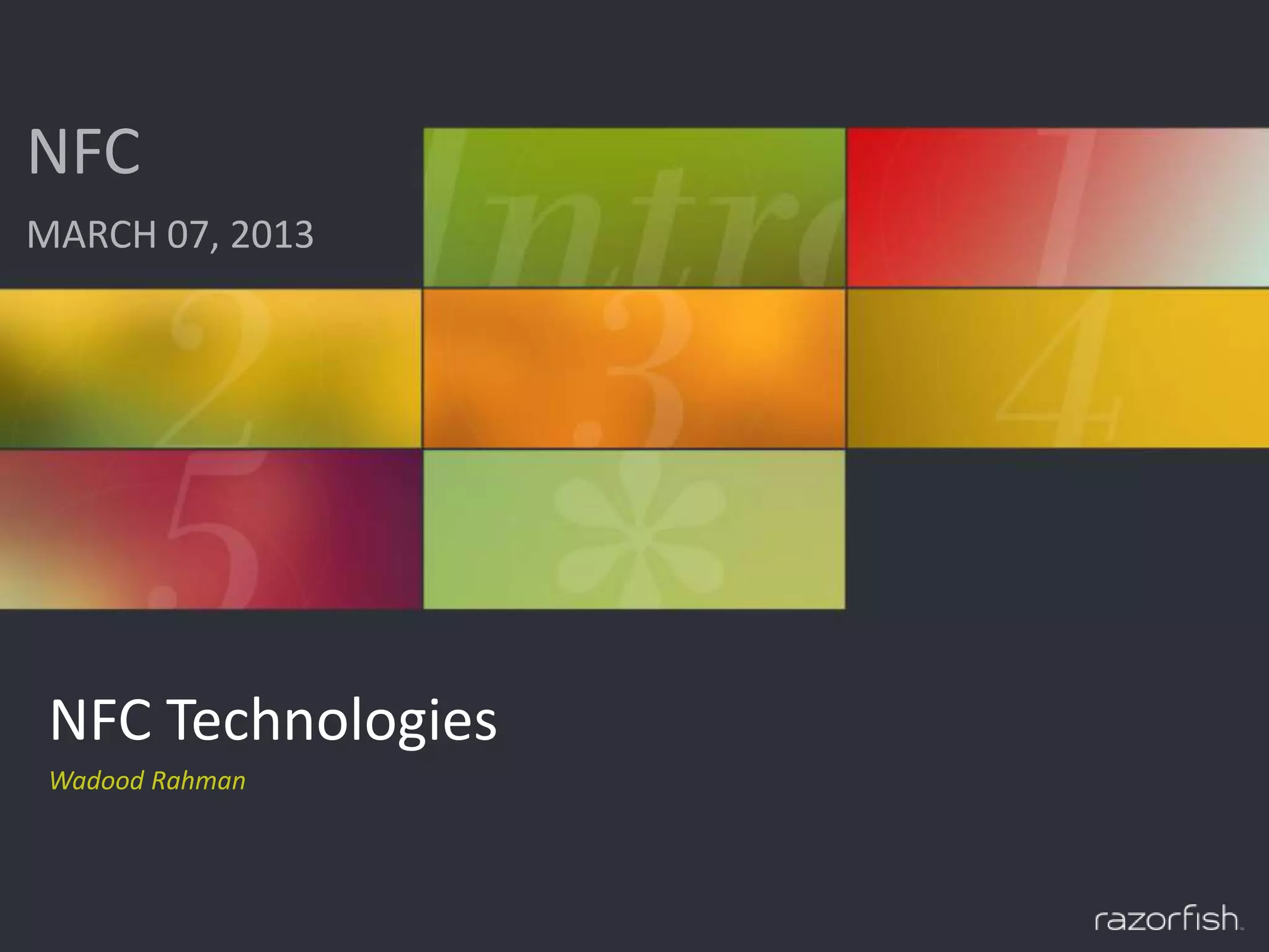 The document outlines the transformative potential of Near Field Communication (NFC) technology, emphasizing its ease of use and ability to streamline various transactions, from mobile payments to data exchange. It discusses the current landscape, highlighting growing consumer acceptance and significant market milestones projected for NFC by 2015, along with diverse applications across industries. The document also explores future business cases and the ongoing development of NFC tools and technologies, forecasting an increase in NFC-enabled devices and their integration into everyday life.
