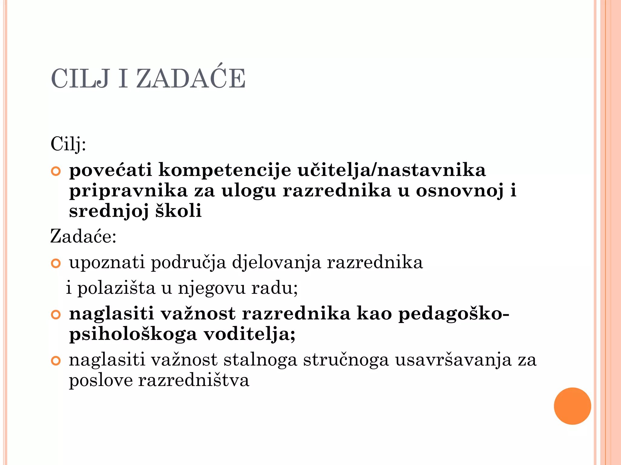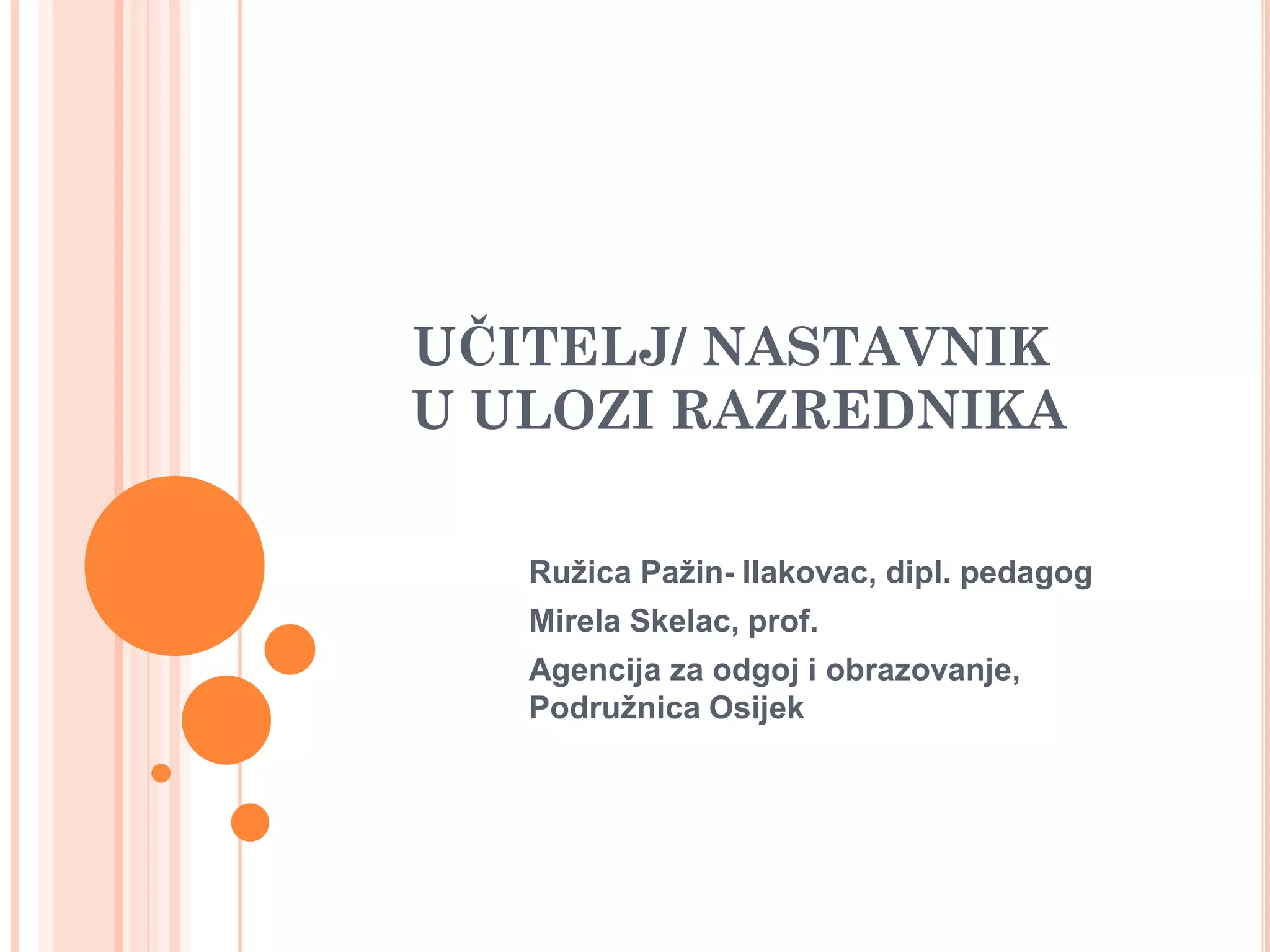 Dokument se fokusira na ulogu razrednika u osnovnim i srednjim školama, naglašavajući važnost njihovog stručnog usavršavanja i suradnje s učenicima, roditeljima i drugim nastavnicima. Ističe se potreba za empatijom, aktivnim slušanjem i kvalitetnom komunikacijom u cilju poboljšanja odnosa unutar obrazovne zajednice. Također se govorio o važnosti inovativnih metoda komunikacije i multidisciplinarnog pristupa u suradnji između roditelja i škole.